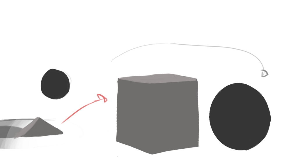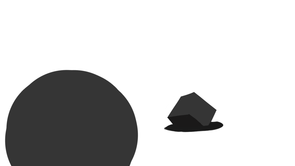 Idea: Distill a concept into is most basic components then go from there. I took the idea of friendship, didnt like where that was going, then took the idea of different worlds interacting, which turned into DIMENSIONS. and now I’ve simplified it into oblivion literally, we have, a cube, and a sphere in a white void, with the addition of a tear in their universe, that reveals a step down in dimensions, so we travel from 3D to 2D, in both story, and visual style.
