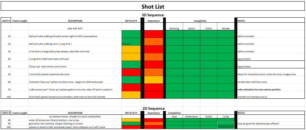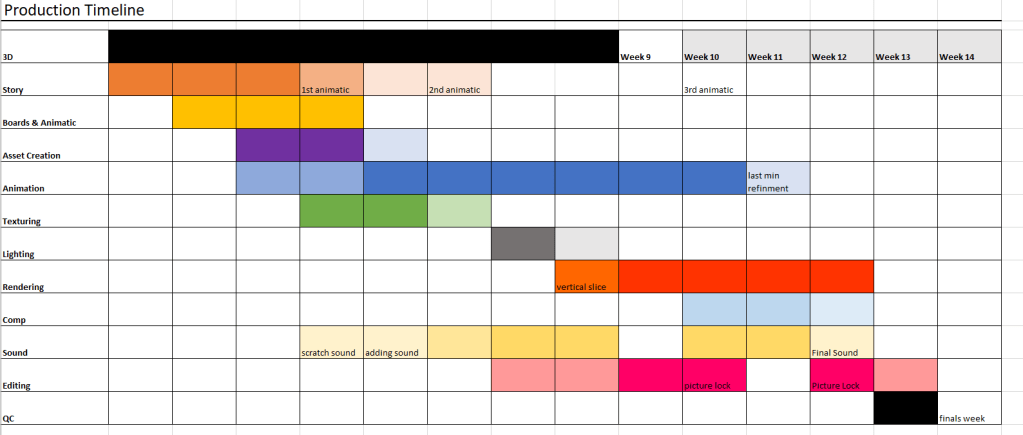 The plan is to finish all animation this week, experiment with some sound stuff while everything renders, and then edit the final cut next week giving me an extra week to go back if need be.